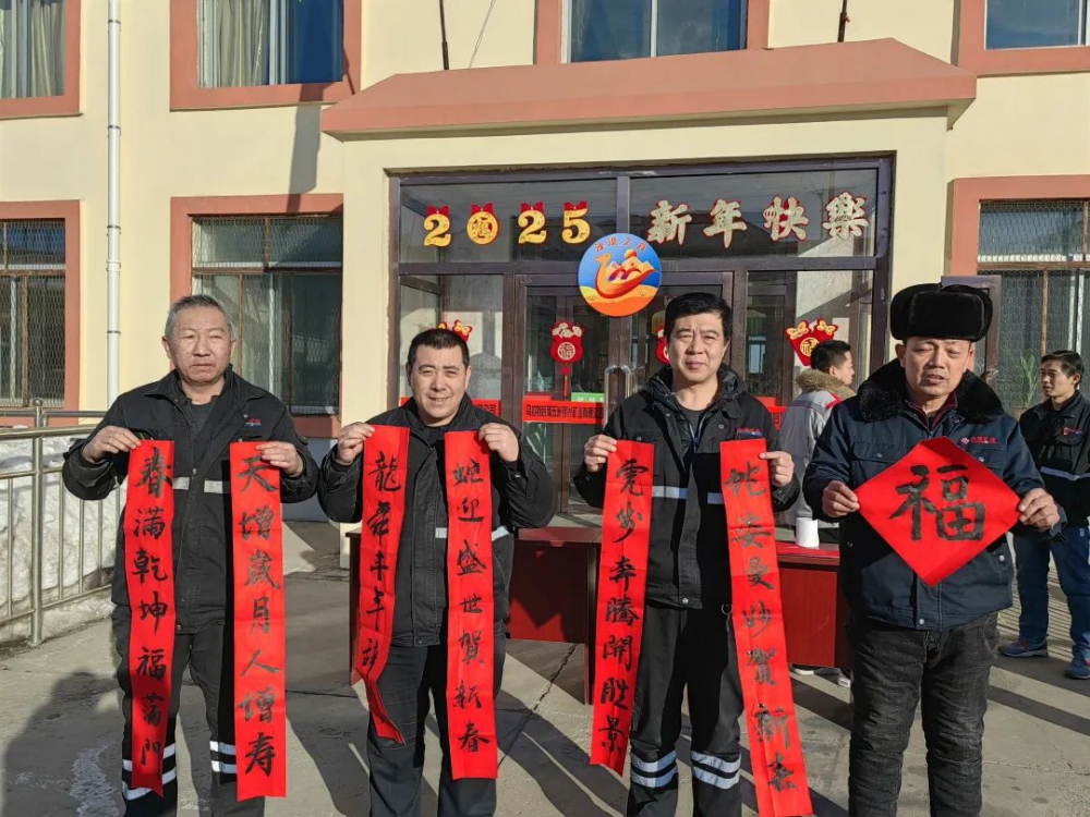 在“迎新春、送春聯”活動現場,翰墨飄香,暖意融融,一張張紅色宣紙徐徐鋪開,書法愛好者鄒波、牛建勃圍繞“蛇年”主題,專心致志思“對聯”,凝心聚力揮毫潑墨,提筆、蘸墨、運筆,將新春祝福用筆尖無聲呈現出來,職工一邊欣賞精美書法,一邊挑選心儀對聯?;顒庸菜统龃郝?、福字60余副。