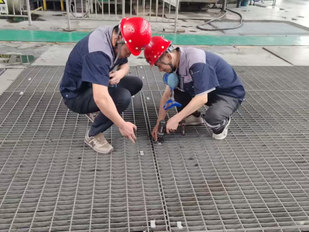 突出問題精準(zhǔn)治理。一選廠已生產(chǎn)運(yùn)行多年,濃密車間人行通道地板腐蝕嚴(yán)重,數(shù)次進(jìn)行修修補(bǔ)補(bǔ),存在較大安全隱患。為徹底解除隱患,公司利用停機(jī)間隙,籌集資金、人力、物資,對70米通道的地板、護(hù)欄、橫梁和支柱進(jìn)行全面拆除更換,有效保障了作業(yè)區(qū)域安全;同時,為汲取內(nèi)蒙古“7.23”格柵板脫落事故的教訓(xùn),切實(shí)保障員工及參觀人員的生命安全,公司購買8000套固定卡扣,對兩個選廠磨浮車間格柵板進(jìn)行加固處理,并在參觀通道設(shè)立了安全提示牌。